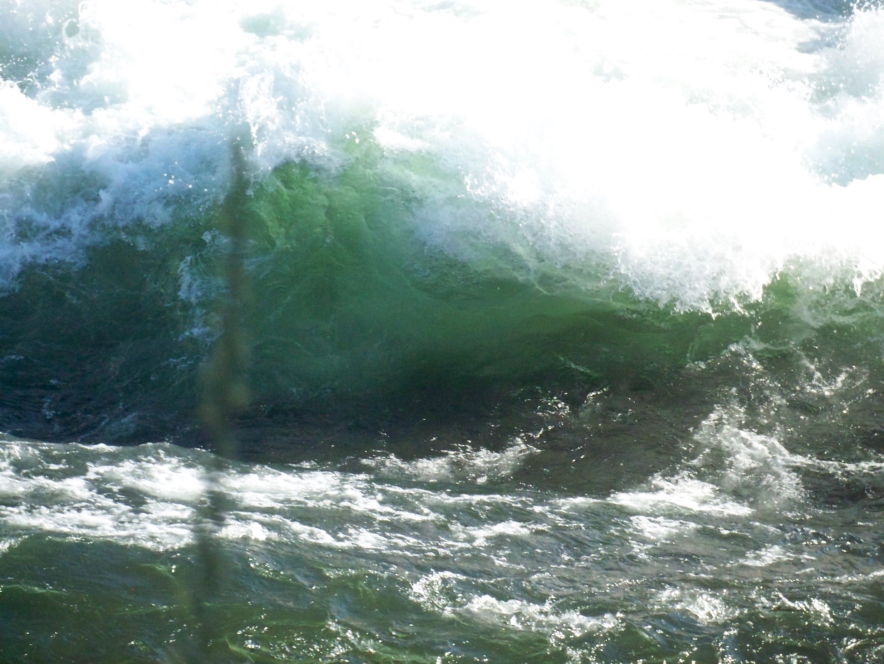 Kathy captured this moment of colour as the water swirled around rocks and back on itself in the form of a green wave. You can see some of the fury of the water and a calmer look in the water.