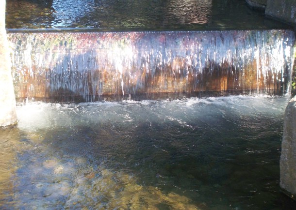 In the midst of the power and fury of nature, is a sense of calmness. This is the base of a small stream that runs through Riverfront Park and a Zen garden in the park. It adds a sense of contrast to the walk. On one side, nature with its sound, might, and power and on the other side, the quiet of Zen influences.