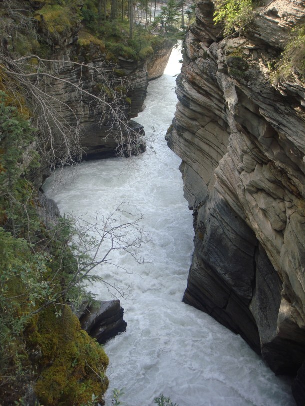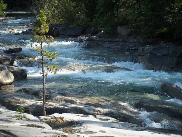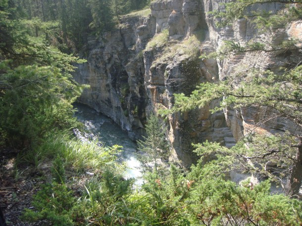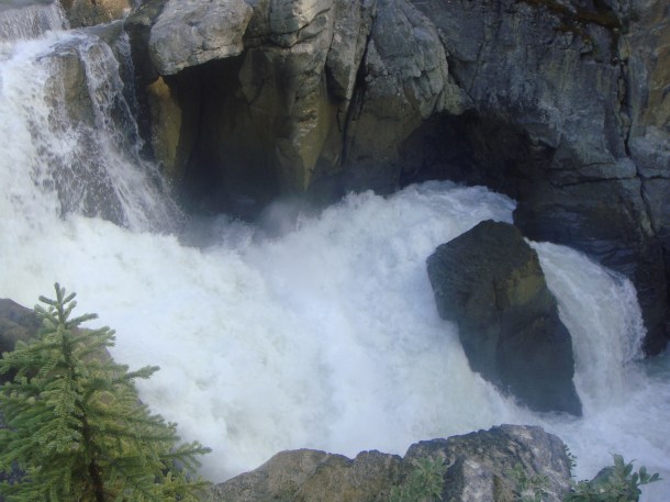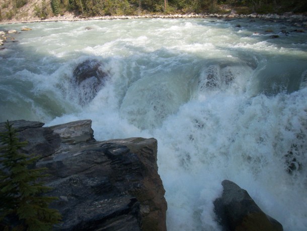 We stopped several times in Mount Robson Provincial Park. I find an advantage in most Canadian provincial parks is the accessibility of many of the featured places. Our first stop was at the visitor centre at the base of Mount Robson. We walked a few hundred metres up the Berg Lake Trail. The headwaters of the Robson River are located at the base of the mountain and begin with Robson Glacier. The river runs fast and has many areas where rapids and small waterfalls flow. The colour of the water is a product of the rock particles the glacier scrapes from the bedrock it passes over.