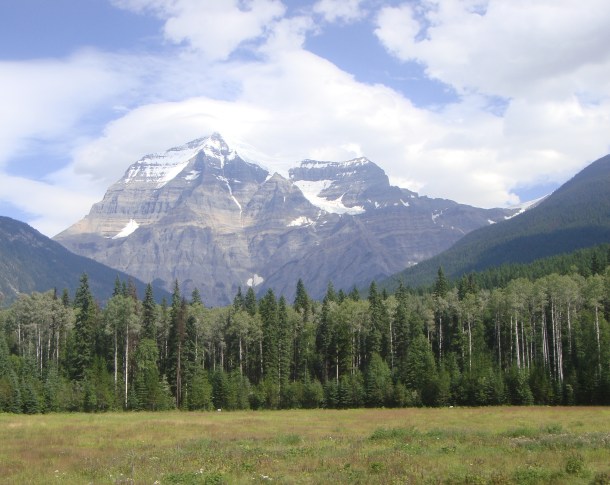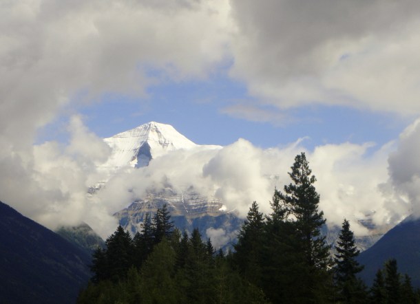 Mount Robson towers above the valley and dominates the skyline. It is not always fully visible, but is still the most imposing feature of this area.