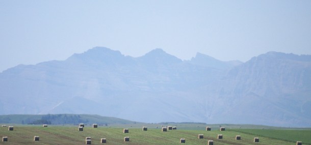 As we drove south from Pincher Creek, this is the view of the mountains before a person drives into them. The sign says, “Where prairie meets the mountains” and they do.