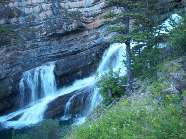 We hiked into Blakiston Falls which are bridal veil falls as they resemble a bride’s veil. I saw the falls from a distance and Kathy, the mountain goat she is, was able to get closer. This was my view and I was sitting on the ground.