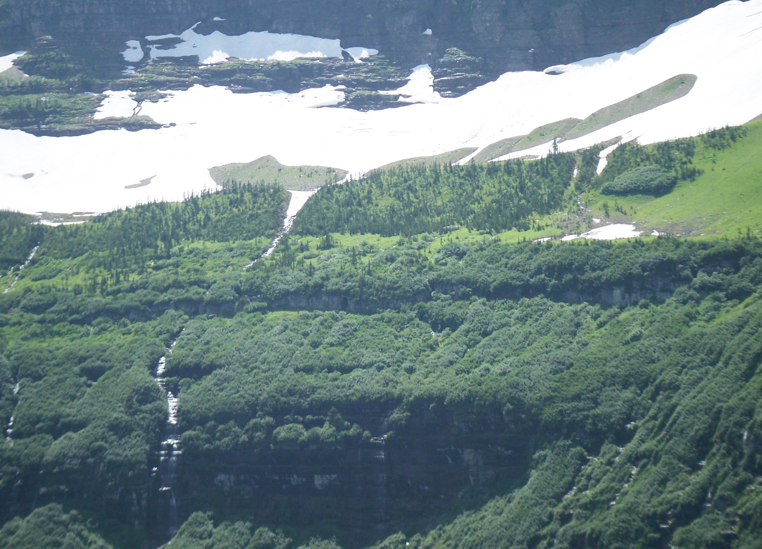 Some waterfalls in Waterton are less accessible. Kathy took these pictures on the walk around Cameron Lake. The mountain, on the Montana side of the lake, is Mount Custer. It is named for a surveyor, Henry Custer, who worked in the area.
