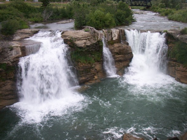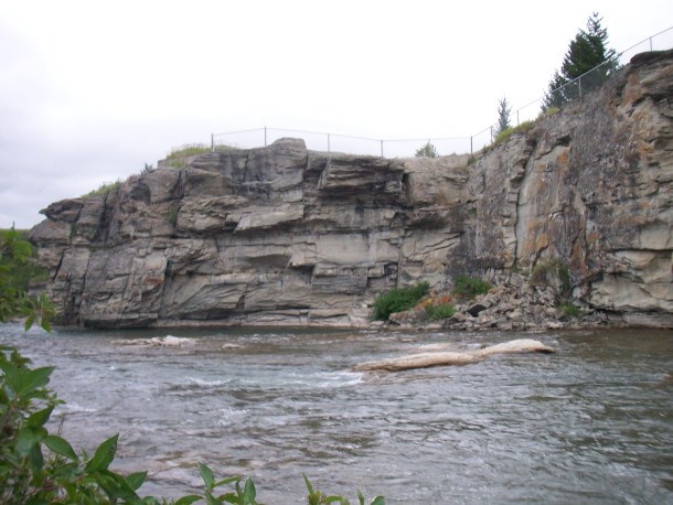 I disconnected yesterday as the Internet was unavailable. It was a dreary day, but we toured parts of the Crowsnest Pass. One stop was Lundbreck Falls. It is a stop you can easily miss, even though it is just off the main highway and visible from the secondary road. I liked it because I was able to get up, close and, personal. My fear of heights did not intervene too much.