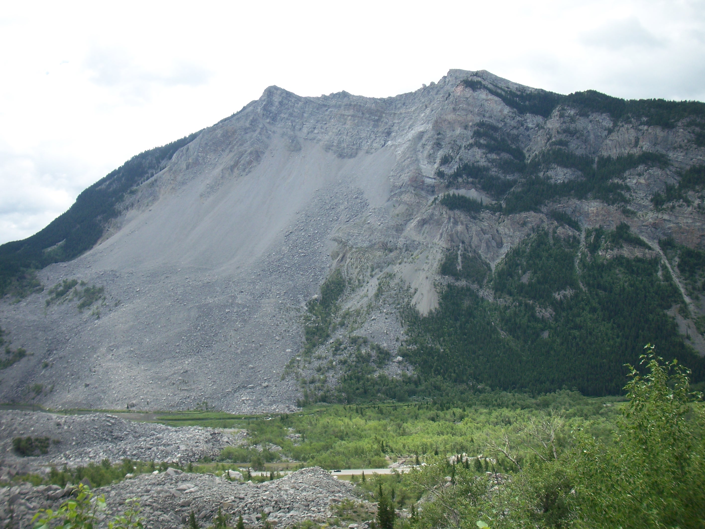 This is Turtle Mountain’s north face where the 1903 slide occurred. The resulting slide is the deadliest rock slide in Canadian history with over 82 million tonnes of rock burying part of the town of Frank and killing over 100 people. The mountain is still unstable and the question is not if there will be another slide but when.