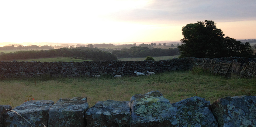 POSTCARD #81: Newcastle: Five days in a Buddhist monastery in Northumberland, sitting meditation in the early morning and last thing at night. The photo above was taken at 5.15am. I wanted a picture of the sunrise and didn’t see the sheep in their places next to the wall – slightly startled by a human being leaning over into their enclosure and the click sound of the phone camera. They wait to see if he comes back, forget about it and only the fragrant grass remains… early on a summer’s morning.