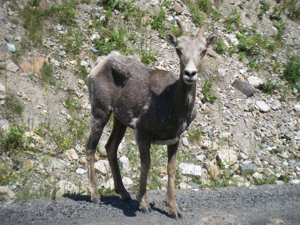 Not all our neighbours are fearsome. This mountain sheep posed for his picture.