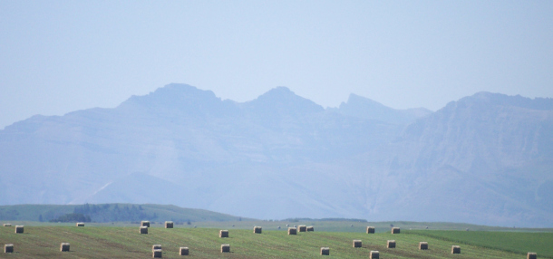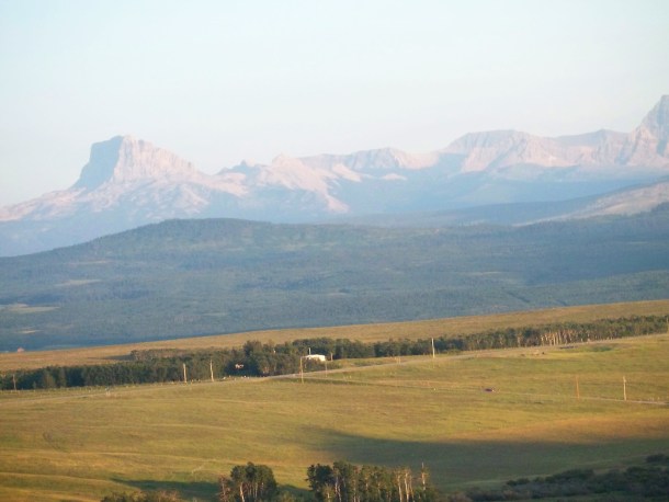 I took this picture as we turned towards Waterton. It was a hot, hazy day, blocking a view of the mountains.