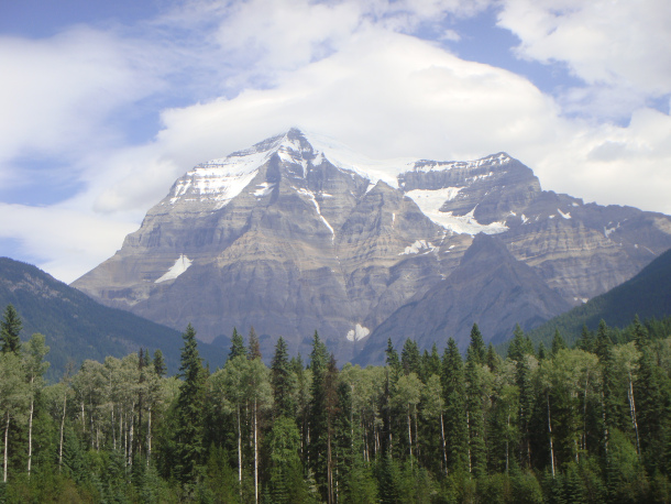 Mount Robson appeared with a cloud-like frame. I enjoy taking pictures of Mount Robson when the clouds show something different.