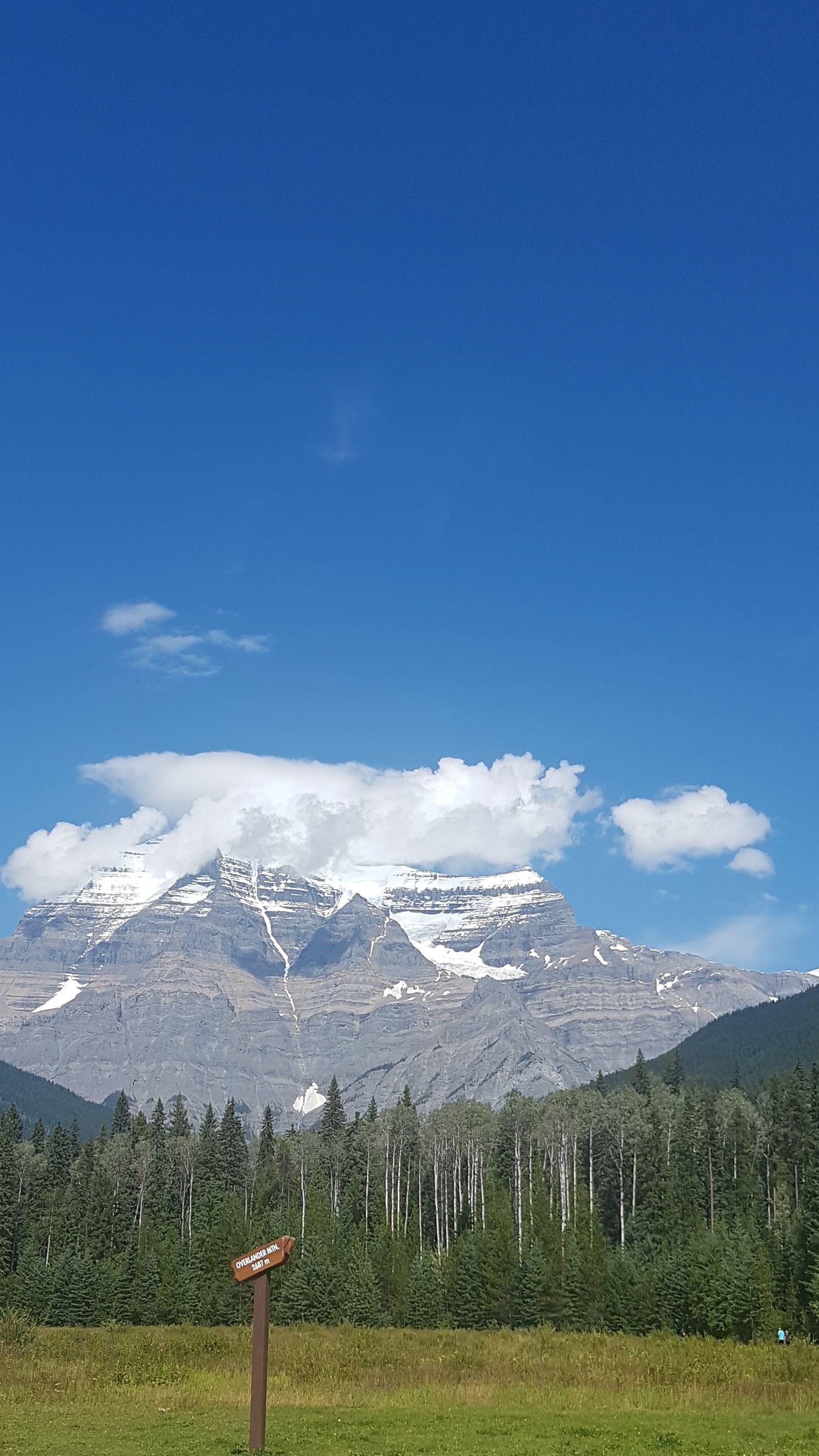 Below, is a picture of Mount Robson. We stop there on our trips to British Columbia and walk a bit. I am always left with a sense of wonder and, as we walk alongside the Robson River, I feel a sense of peace and gratitude for just being there.